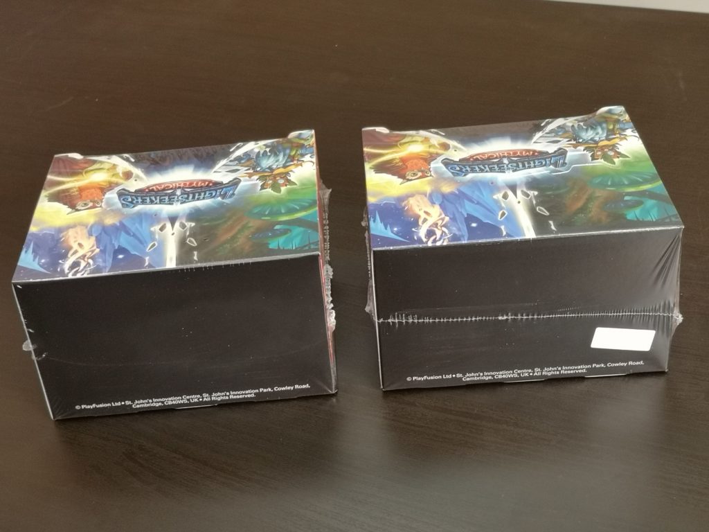 To identify if a Mythical box is from the second print run, check for a white sticker on the back of the box, in the bottom right corner. It is important to note that the Wave 2 on the front of the box refers to Mythical being the second Lightseekers set, and not to it being the second print run of the set; so make sure to look for the sticker.